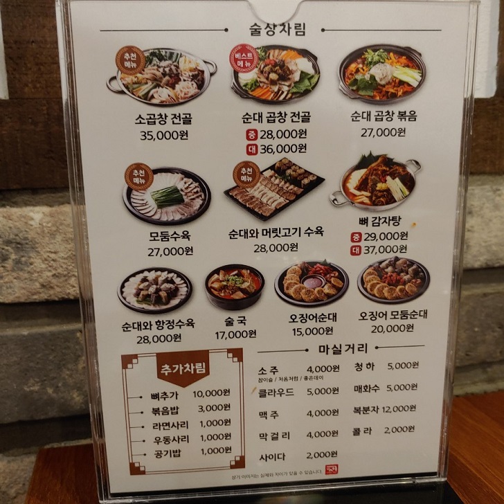 삼계탕 12,000원 / 순대곱창볶음 25,000원